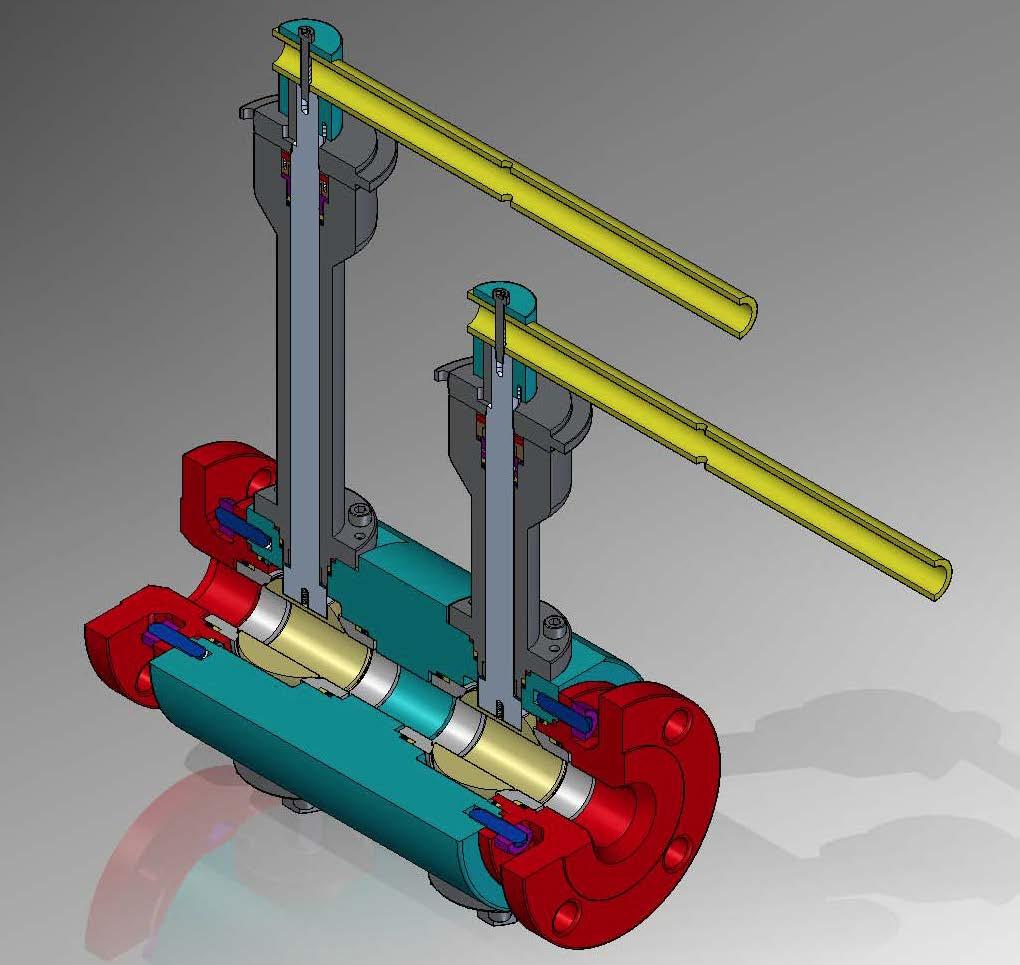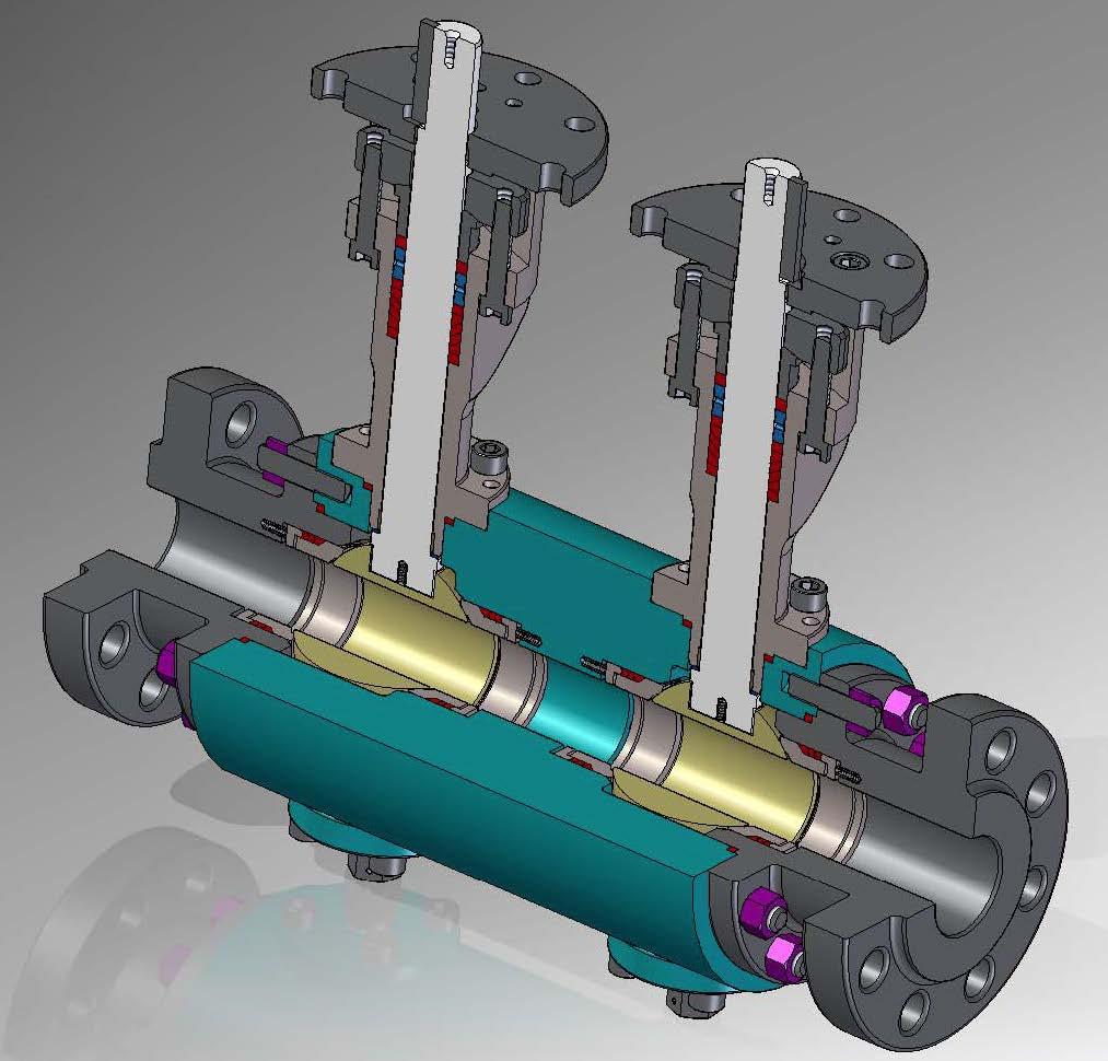 This configuration provides the best option for isolation service where double block and bleed is required. System isolation could be realized also with due individual ball isolation valves, a connecting pipe and a bleed valve with an expensive cost and considerable weight.